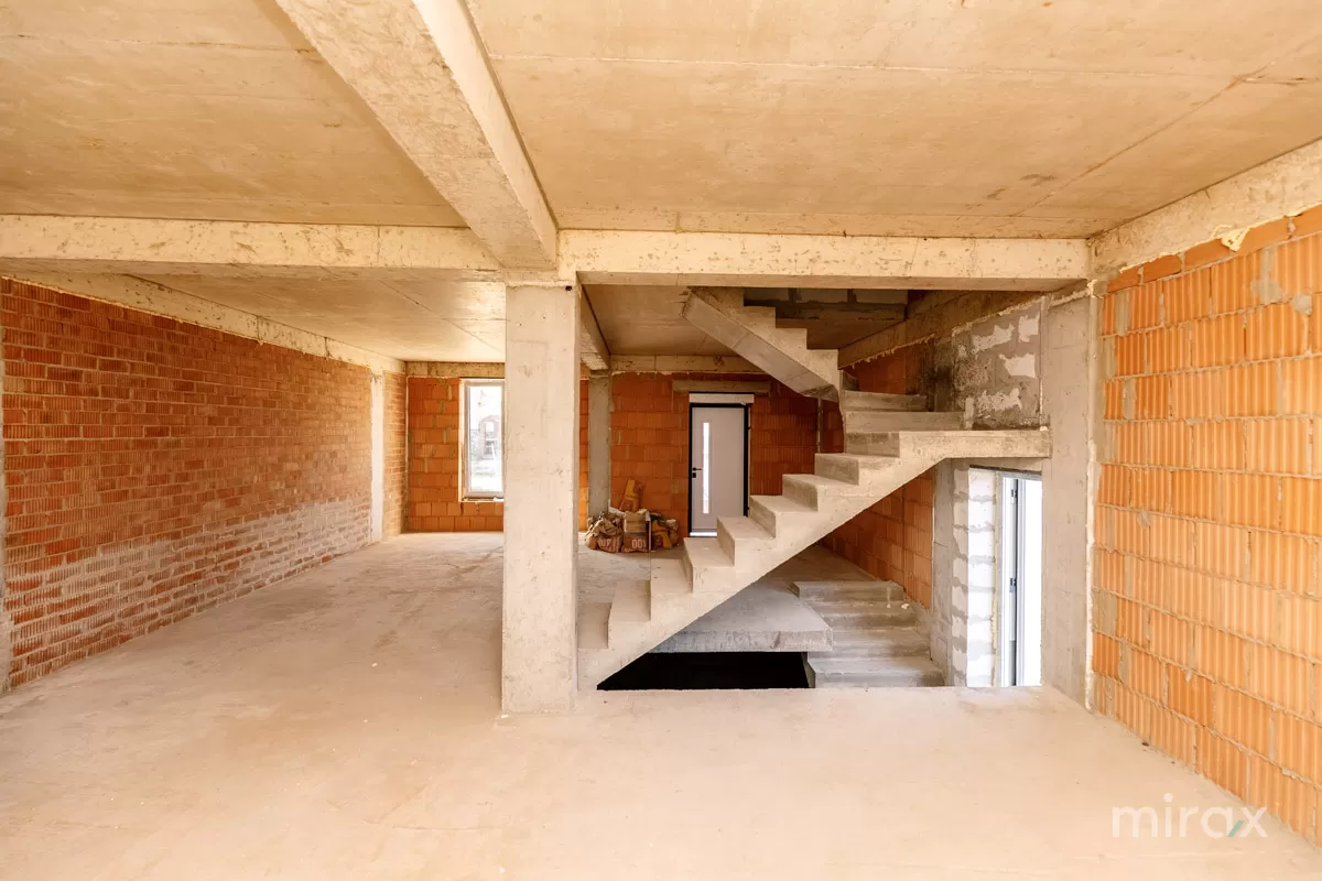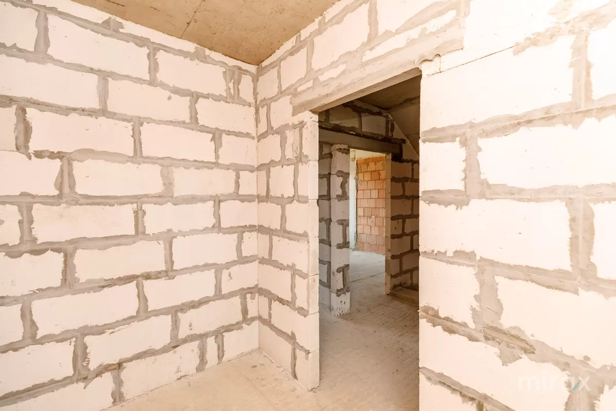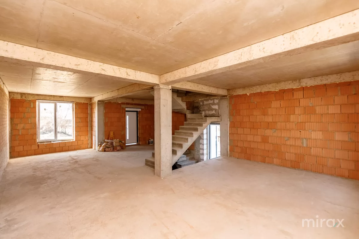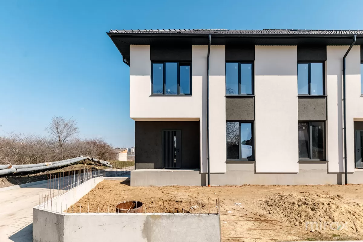 A duplex house in grey shell condition is offered for sale, located in a quiet area of Codru, on Unirii Street, right next to the terminal station of trolleybuses No. 9 and 17 (Hâncești road).