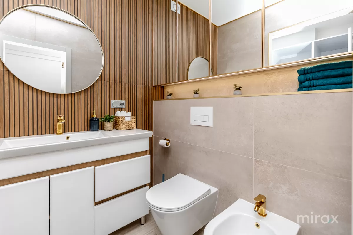 Compartimentare: antreu, 2 dormitoare, bucătărie, living, 2 blocuri sanitare.
