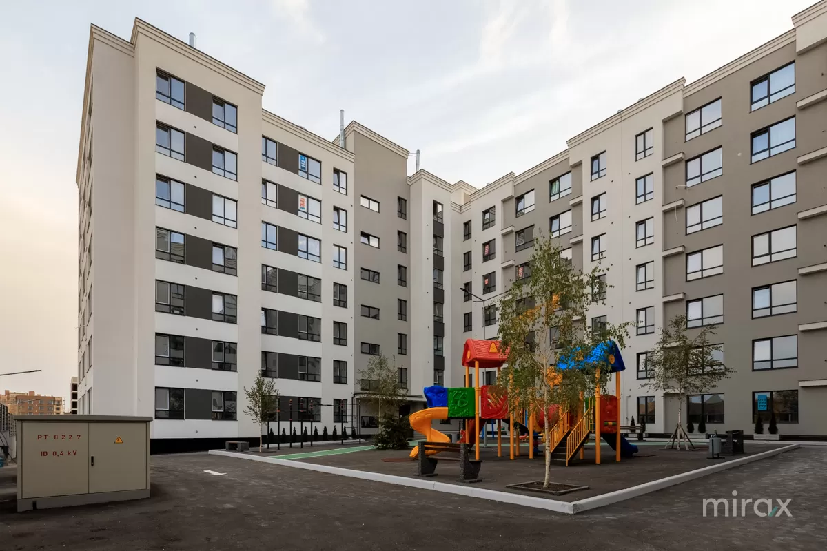 Curtea complexului este amenajată cu teren de joacă pentru copii, pază și supraveghere video 24/24.