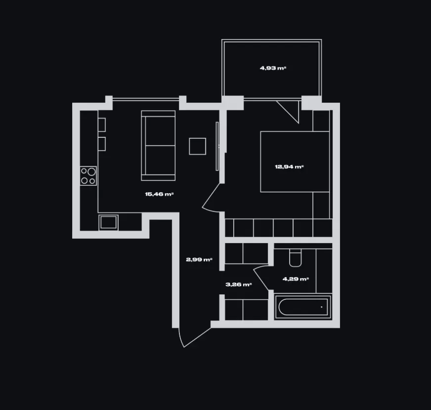 Общая площадь: 40,42 м²