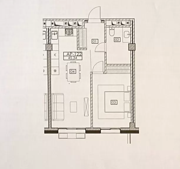 Общая площадь: 45,34 м²