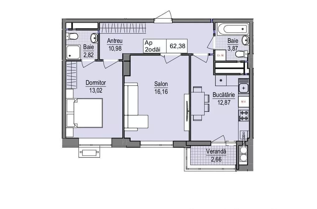 Общая площадь: 62,82 м²