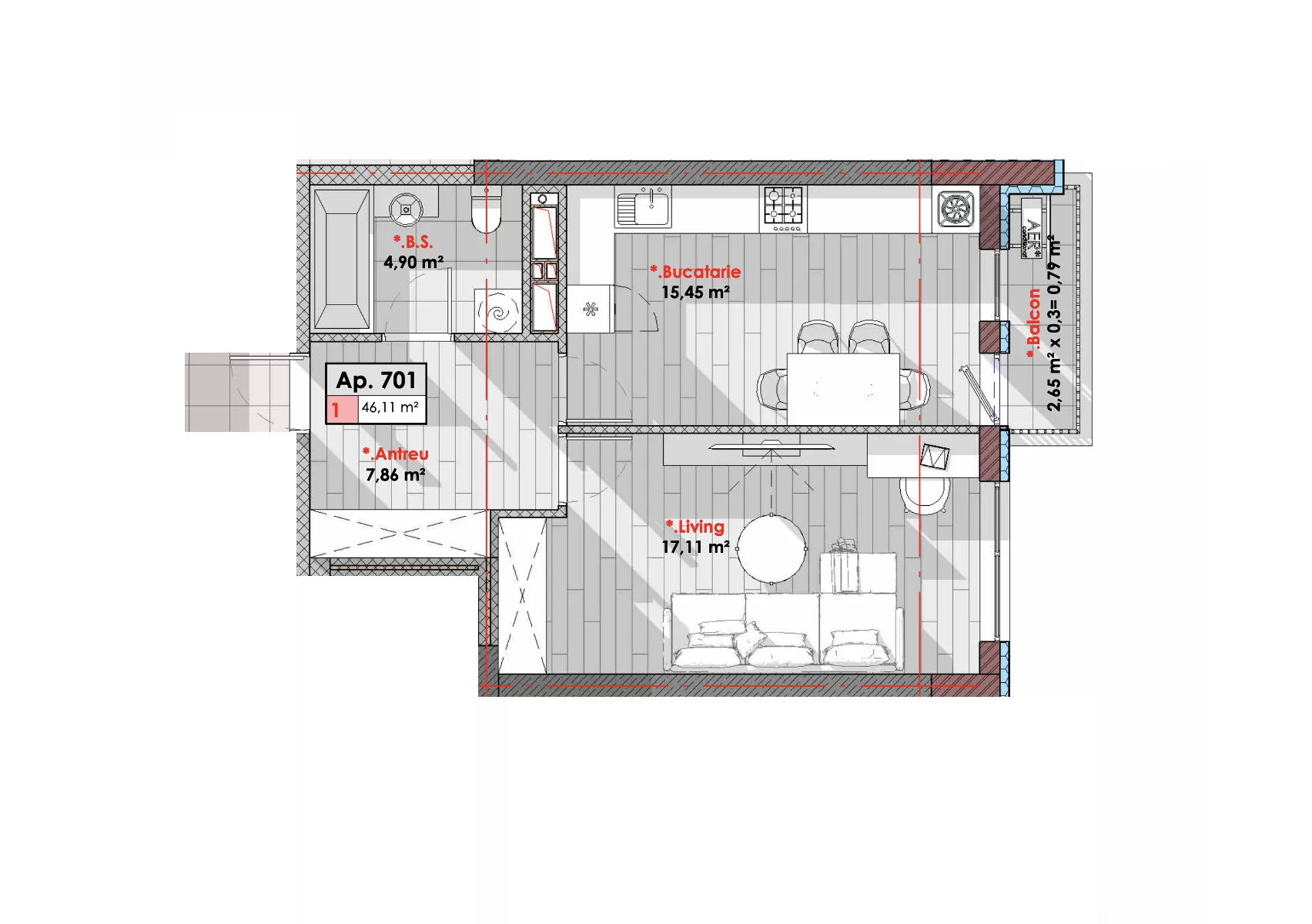 Общая площадь: 46 м²