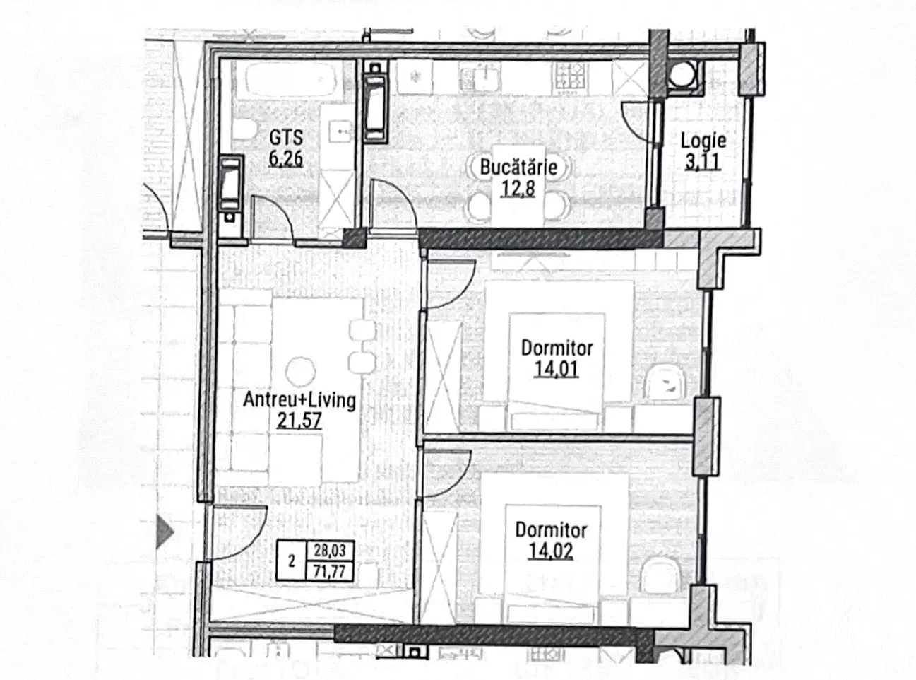 Общая площадь: 71,77 м²